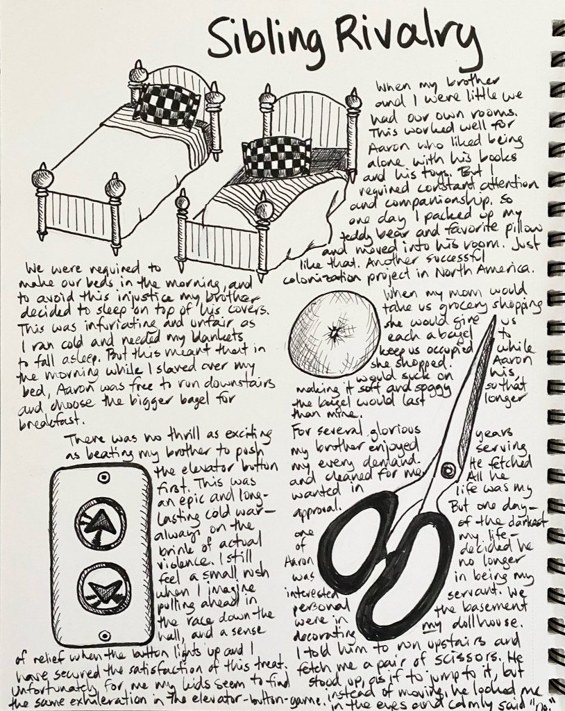 We were required to make our beds in the morning, and to avoid this injustice my brother decided to sleep on top of his covers. This was infuriating and unfair as I ran cold and needed my blankets to fall asleep. But this meant that in the morning while I slaved over my bed, Aaron was free to run downstairs and choose the bigger bagel for breakfast…